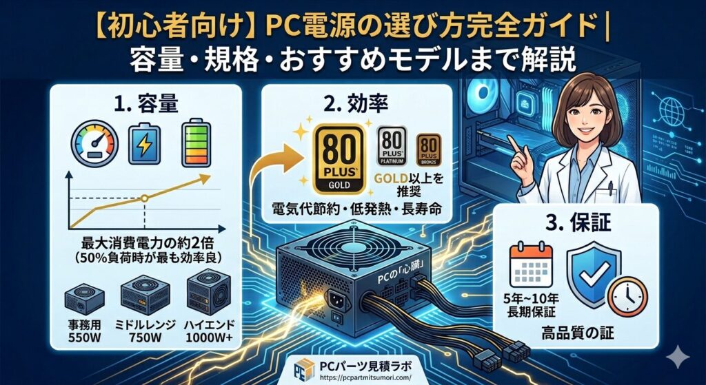 【初心者向け】PC電源の選び方完全ガイド|容量・規格|解説